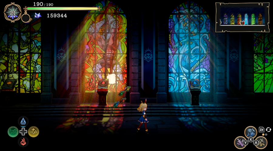 Tá, mas o que é esse jogo então? Bom, Ariana é um RPG de ação, em 2D, com fases independentes e lineares que contam uma história com começo, meio e fim bem determinados. Você pode entrar em qualquer um dos livros (as “fases” do jogo) na ordem que quiser, embora eles tenham graus de dificuldade diferentes, e aí você joga a história daquele livro, encontra aqueles NPCs, faz aquelas sidequests, derrota aquele chefão e segue em frente. Depois de uma passadinha na biblioteca que serve de “base de operações”, escolhe a próxima fase e assim vai. Tá afim de jogar algo assim? Ótimo, então vai curtir Ariana.