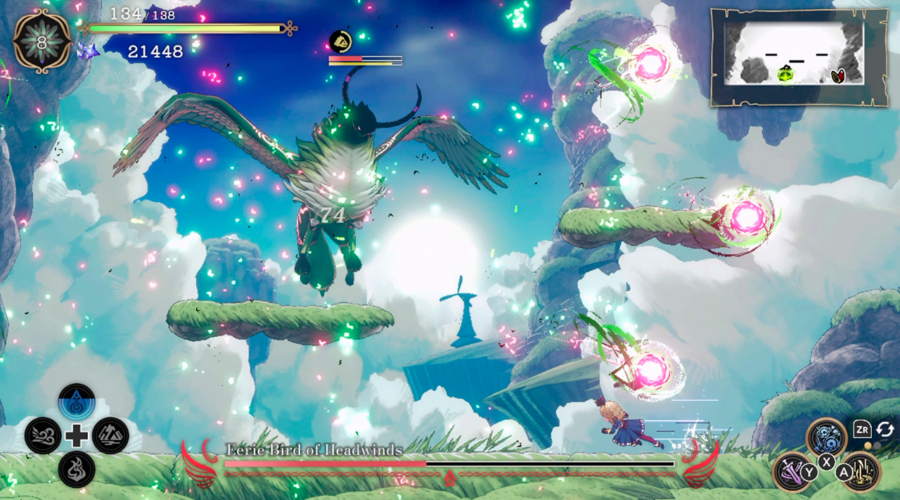 Já que esse jogo é, principalmente, um jogo de combate, vamos falar dele antes de mais nada. Você controla Ariana, uma garotinha com o poder de consertar os grimórios que regem a magia e a natureza. E de que forma você faz isso? Derrotando inimigos e chefões, é claro! O combate é de ação, e altamente customizável. O jogador tem uma tonelada de magias e habilidades diferentes pra aprender, que vão sendo liberadas à medida que você termina cada fase – ou seja, a progressão depende das escolhas que você faz com relação a qual fase você vai jogar primeiro.