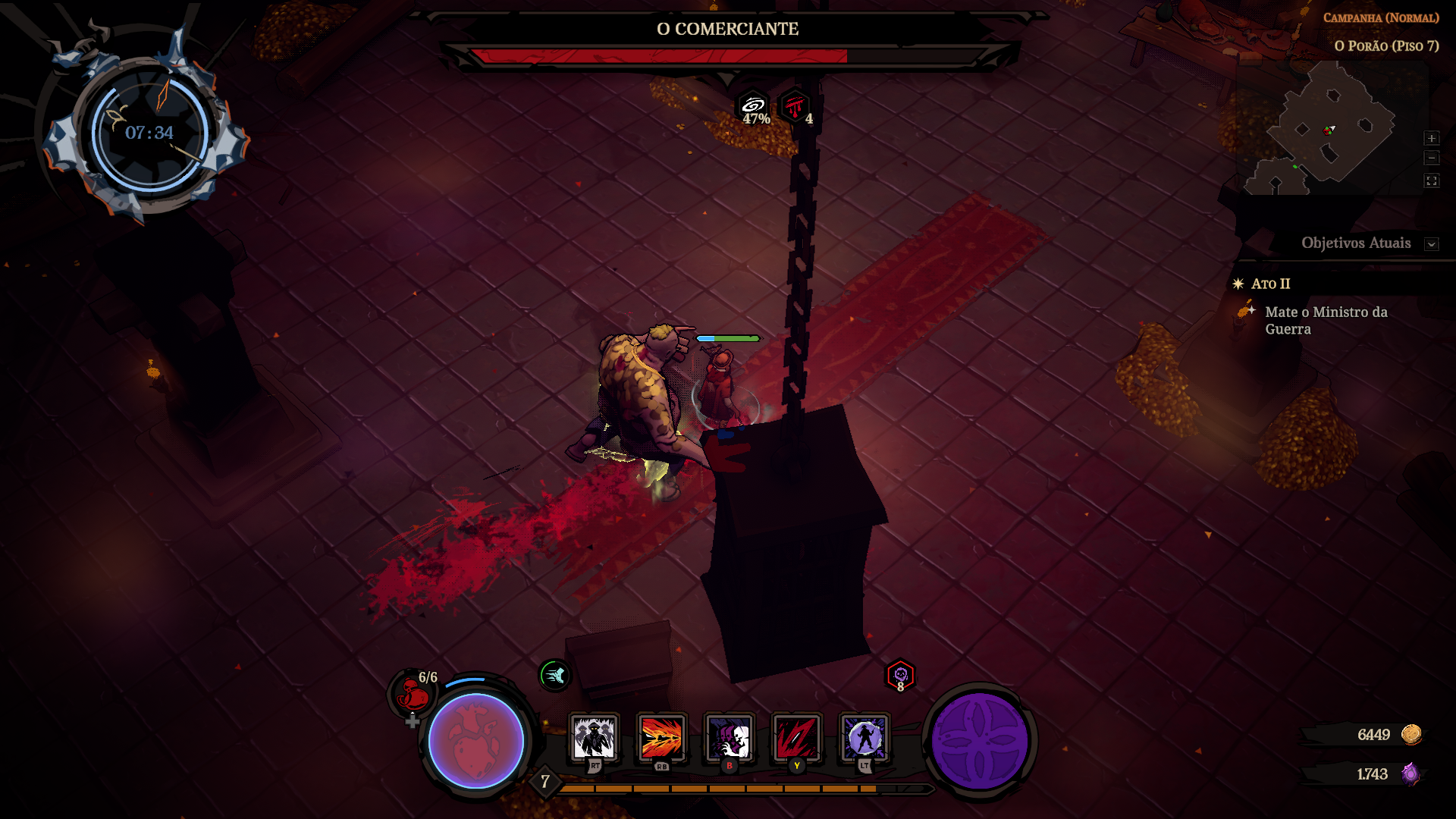 A proteção do relógio, no entanto, não é eterna: cada nova incursão ao Inferno ativa um contador, que corresponde ao tempo máximo em que Pajeú pode ficar naquele ambiente. Com isso, seu objetivo consiste em enfrentar hordas de inimigos e progredir o máximo possível dentro do limite de tempo estipulado. Caso o tempo ou sua vida acabem, você é transportado de volta para o sertão e o ciclo se repete. Como o tempo está sempre correndo, existe um certo elemento estratégico sobre quais lutas você deve pegar e quais você pode passar direto. Porém, os monstros básicos são a melhor fonte de dinheiro e experiência para melhorar seus atributos e ataques especiais. Passar direto por eles vai poupar tempo, mas vai te deixar mais fraco contra os chefões e outros confrontos obrigatórios da campanha.