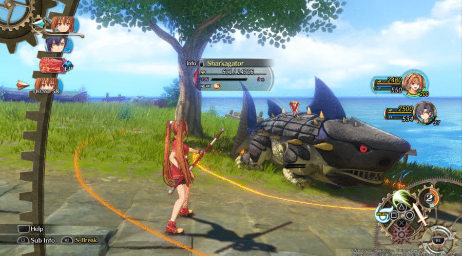 Impossível falar desse jogo sem comparar com o original, então vamos tirar isso do caminho logo. Trails in The Sky 1st Chapter é um remake absolutamente bem sucedido em ser um remake. Com isso, quero dizer que o jogo mantém o que já era bom, mas melhora tudo que o original não podia fazer na época. O reino de Liberl, onde o jogo se passa, nunca foi tão bonito de explorar – o jogo roda bem, chegando a 120 FPS no PS5, mas a qualidade das texturas e geometrias vai te incomodar em alguns lugares se você for esse tipo de pessoa chatona. As músicas, rearranjadas, são maravilhosas, o tema de batalha sendo um grande destaque por ser um jazz big band safadíssimo, no bom sentido. O sistema de batalha está diferente, completamente rebalanceado, mas mantém o que tornava o original excelente (mais sobre isso daqui a pouco). Os personagens são super carismáticos, com atuações de voz incríveis feitas por um elenco estrelado. É, enfim, a versão definitiva do jogo.